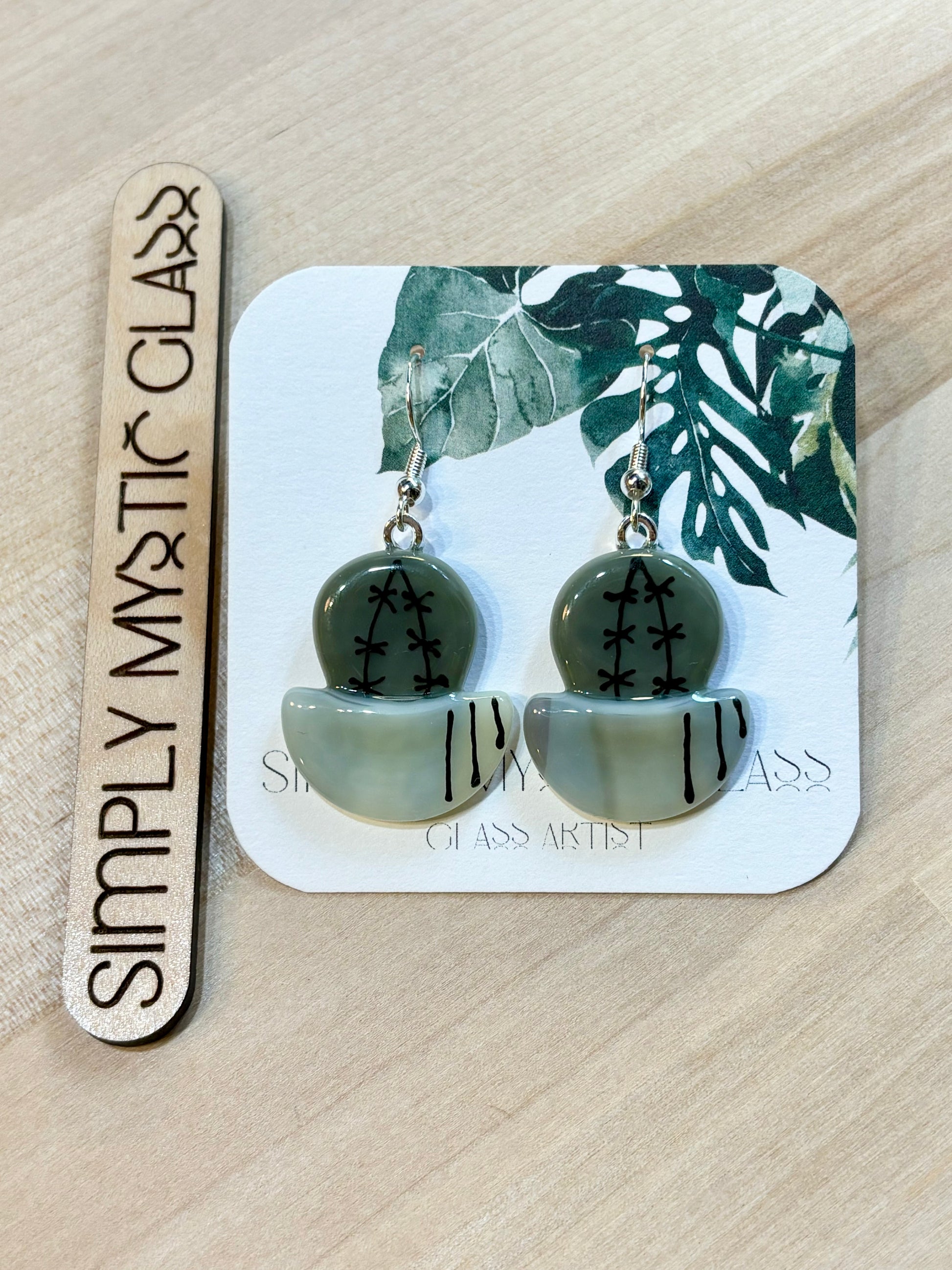 Calling all plant lovers! Add these cute glass potted cactus earrings to any outfit!