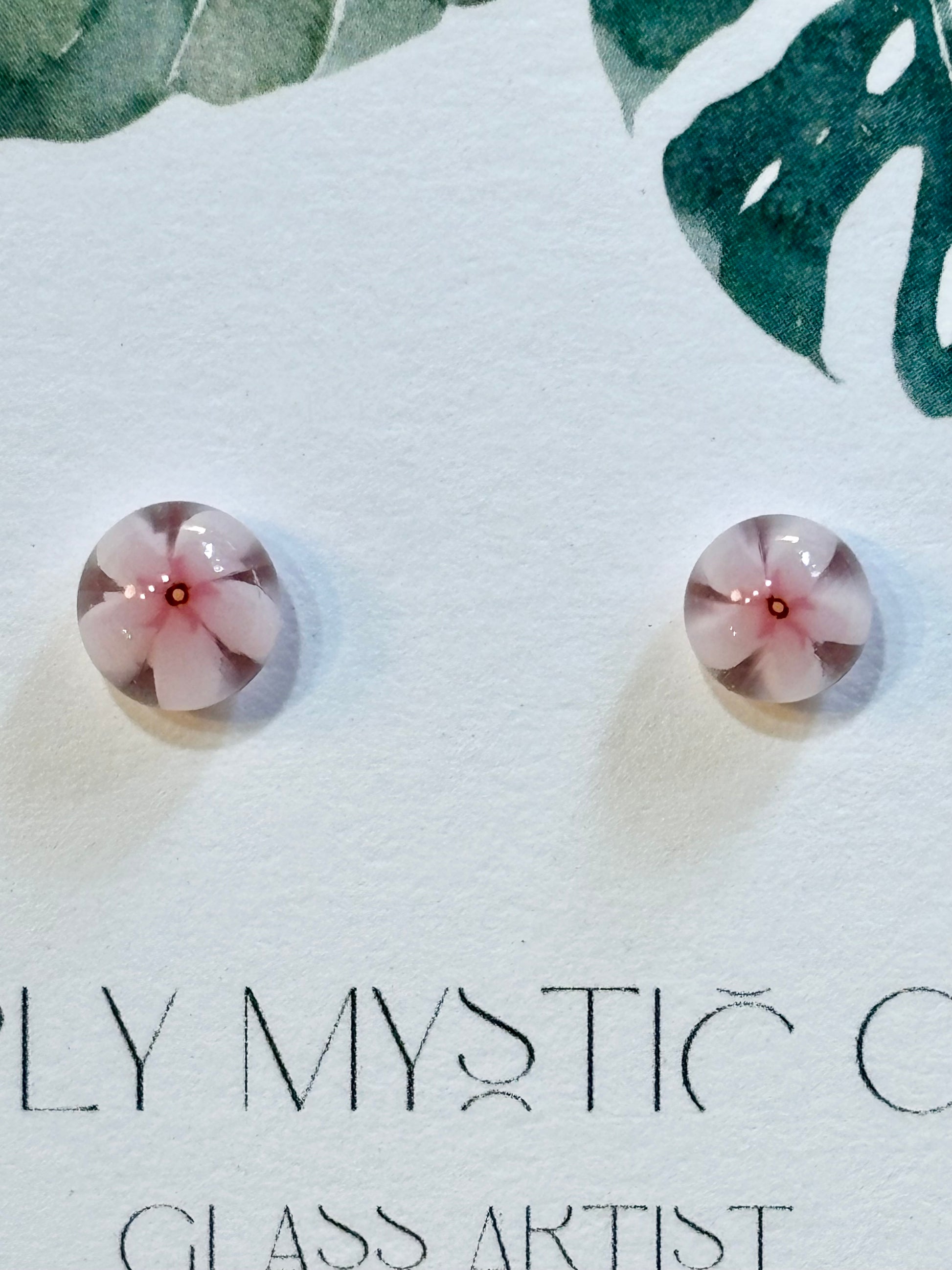 Simple and sweet pink and white flower glass stud earrings. Stainless steel studs.
