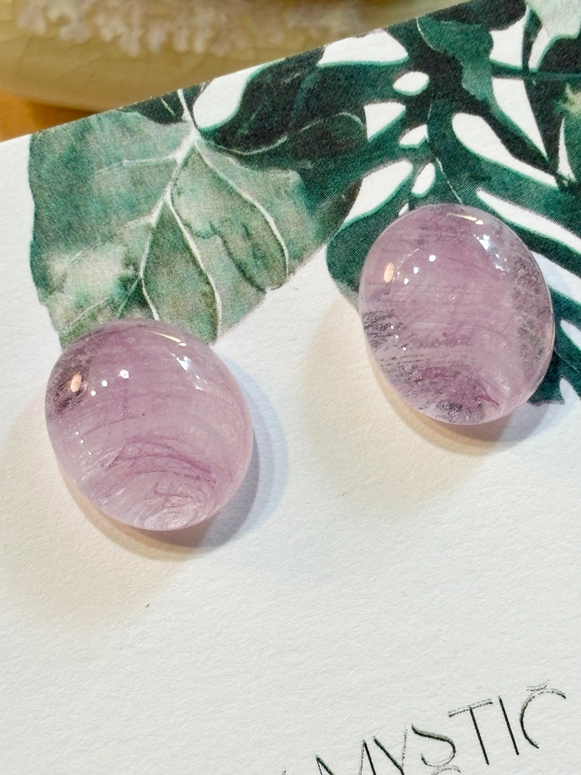 Beautiful pink and clear swirl glow in the dark glass stud earrings. Glows purple in the dark.