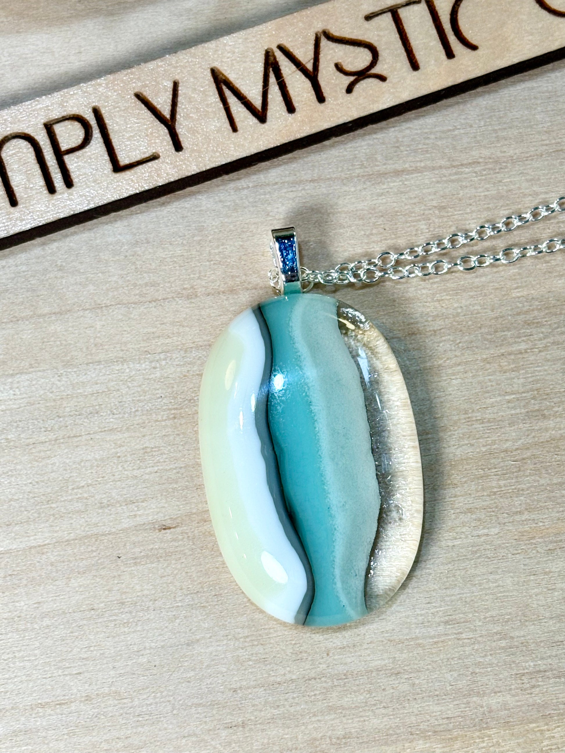 Beautiful glow in the dark glass pendant necklace. Sterling silver plated.