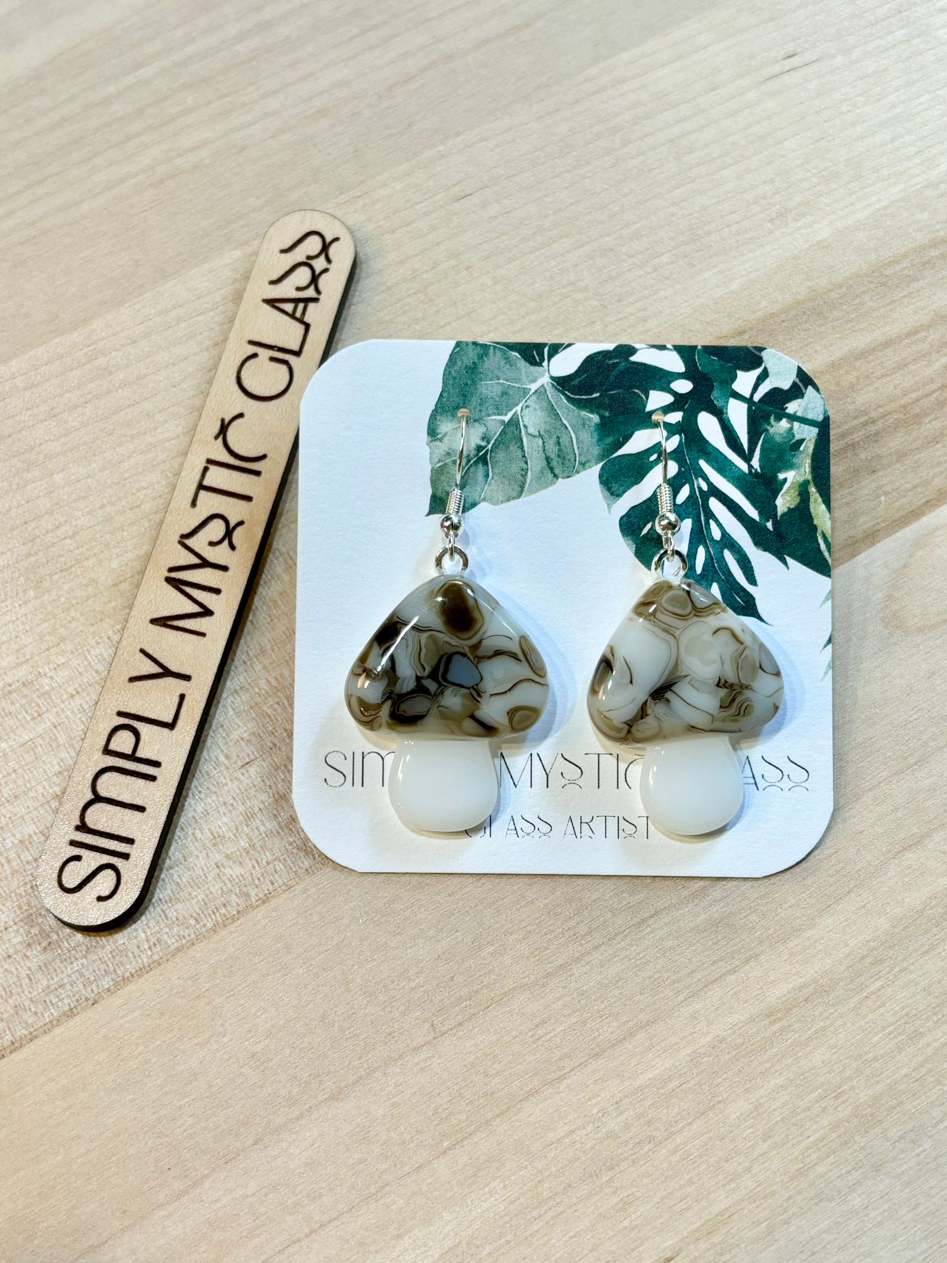 Enjoy adding these cute and funky white and brown glass mushroom earrings to any outfit.