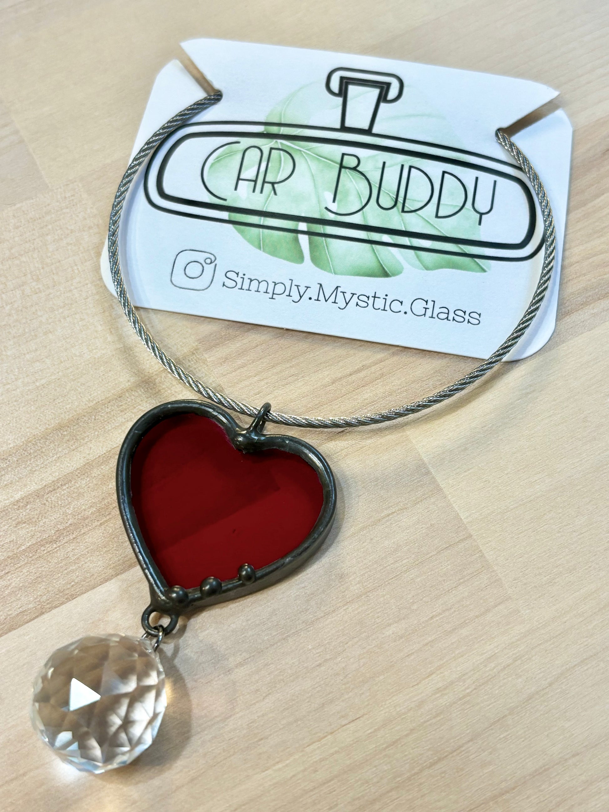 Enjoy stained glass even in your car! Just untwist the cable, wrap around your cars rear view mirror and secure the cable. Now you have a beautiful stained glass piece and a glass crystal in your car.